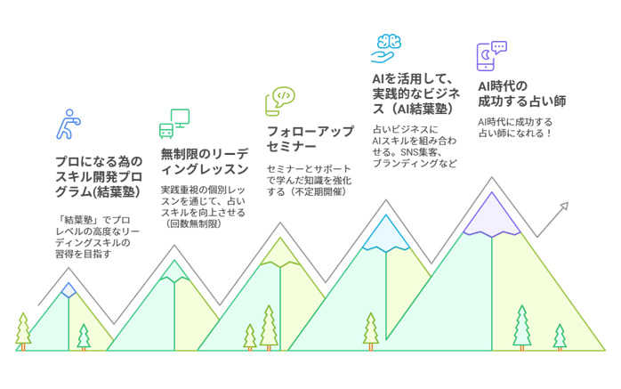 AIを使った効率的な集客・マーケディング方法や、占いセッションを進化させるAIツールの使い方など、占い師にとって効果的なAIの活用方法を惜しみなくお伝えしています。時代に流されるのではなく、時代の流れに乗って未来を切り開いていきましょう。